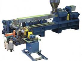 在加熱和混合的作用下,材料在擠出腔內形成高壓狀態,并通過模具的作用,將材料擠出成型,形成顆粒產品。主要組成部分包括驅動系統、傳動系統、加料系統、加熱冷卻系統、真空排氣系統、切粒系統等。